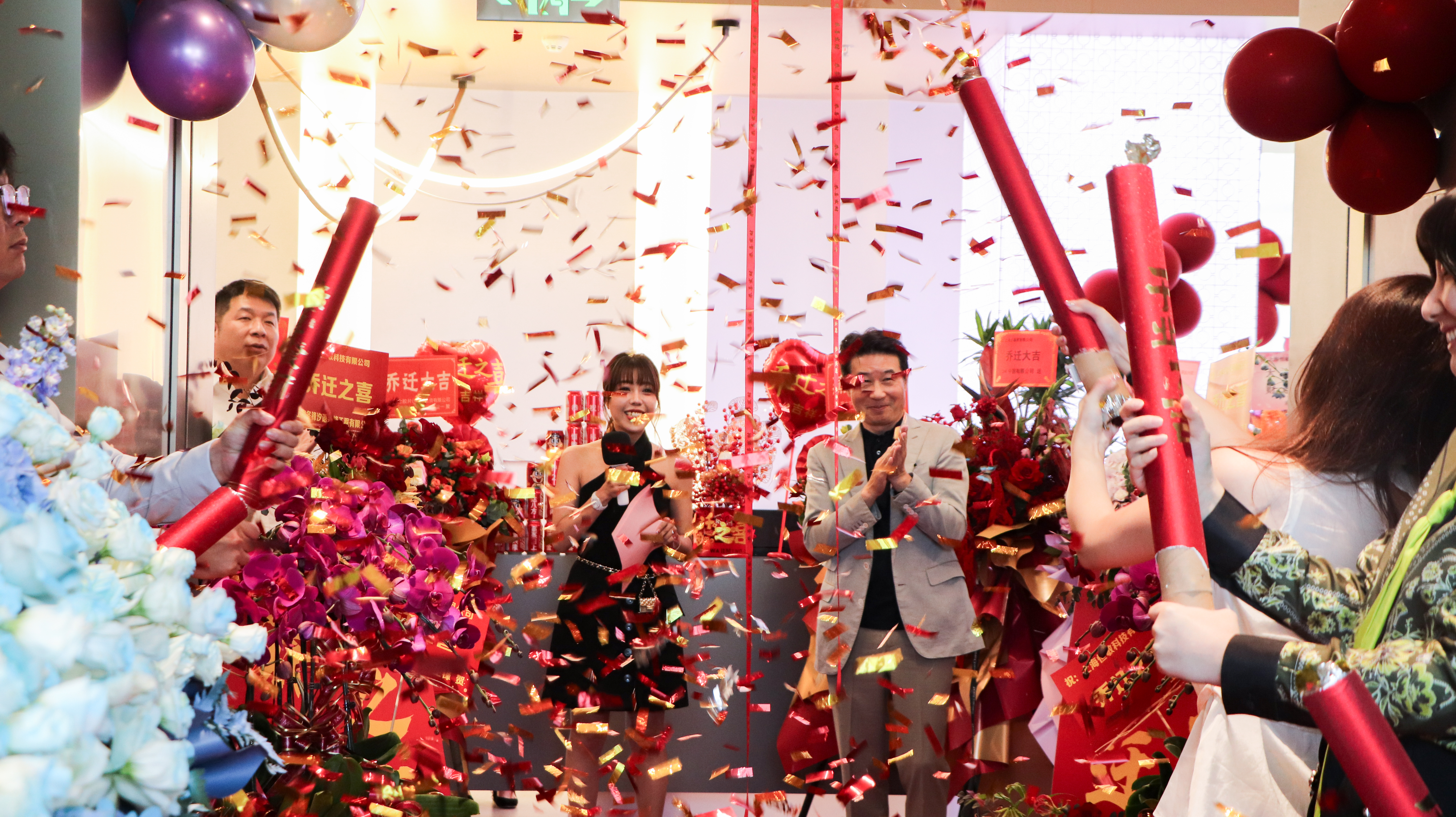 当礼炮绽放,金色与红色的彩带漫天飞舞的瞬间,随着喜帘缓缓落下,现场响起阵阵掌声与欢呼声。